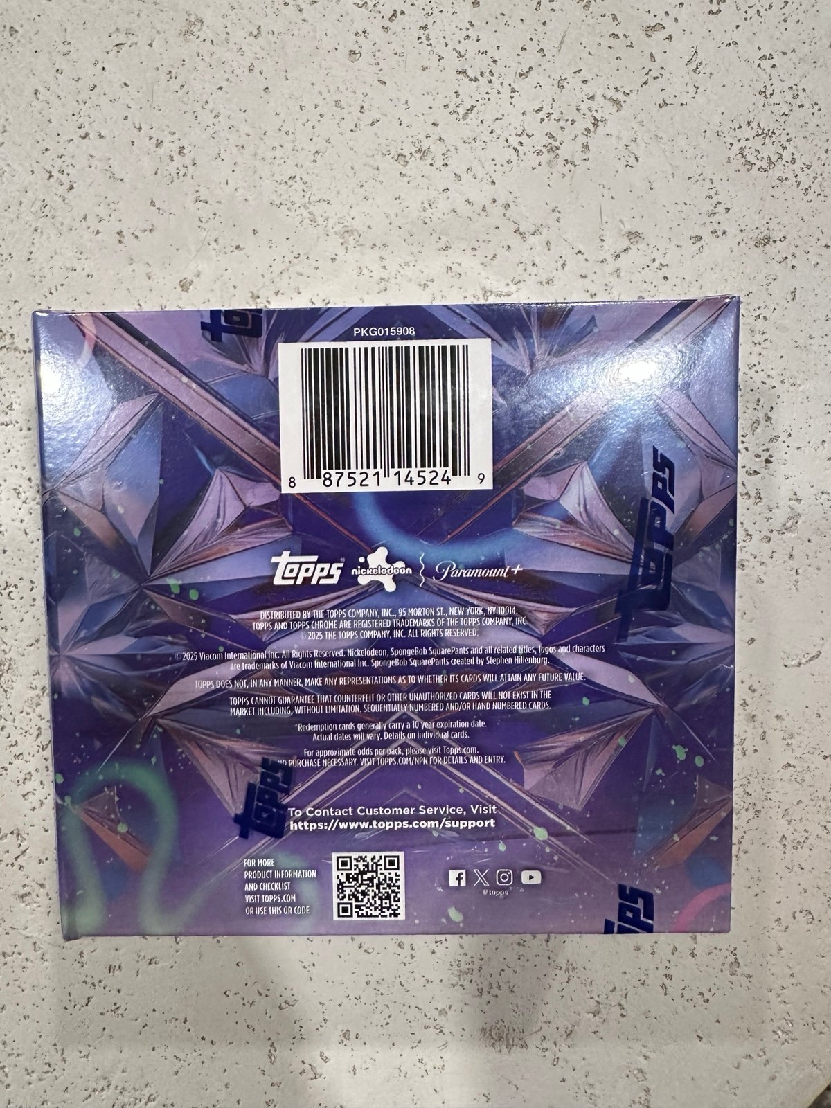 The 2025 Topps Chrome Sapphire SpongeBob 25th Anniversary hobby box is a sealed collection of non-sport trading cards featuring the beloved character SpongeBob from the TV show SpongeBob SquarePants. Manufactured by Topps, this exclusive set includes cards with a standard size and a Sapphire configuration, perfect for fans aged 4 and above. Celebrate the 25th anniversary of SpongeBob with this limited edition box, a must-have for collectors of TV and movie-themed trading cards.